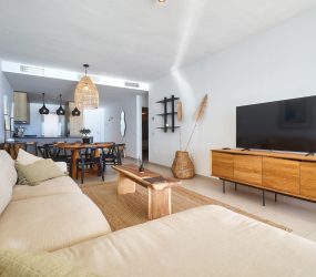 El apartamento se distribuye en una preciosa cocina abierta al salón, con unos acabados y electrodomésticos de la más alta calidad. Con una salida a la gran terraza con una bbq de diseño instalada donde poder disfrutar de la calidad de vida que te brinda la costa. Seguimos con 3 habitaciones dobles, dos de ellos con salida directa a la gran terraza y baño en suite. Despertarse con la sensación de que estas en un barco, alegra el día a cualquiera. Todos los dormitorios con armarios empotrados salvo el principal que disfruta de un vestidor.